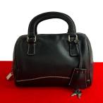 極 美品 希少品 鍵付き PRADA プラダ ロゴ 刻印 金具 レザー 本革 ステッチ ハンドバッグ ミニ ボストンバッグ ブラック 黒 22639