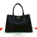 【ポイント2倍】極 美品 袋付き PRADA プラダ ガレリア 三角ロゴ サフィアーノ レザー 本革 ハンドバッグ トートバッグ ボストンバッグ ブラック 25256【送料無料】【中古】