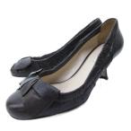 プラダ PRADA レザー リボン パンプス シューズ ヒール 茶 ブラウン 36 約23cm IBO79