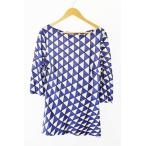 プラダ PRADA 総柄 七分丈カットソー 39397 40 ブルー ホワイト ブランド古着ベクトル 中古☆AA★●250626 レディース