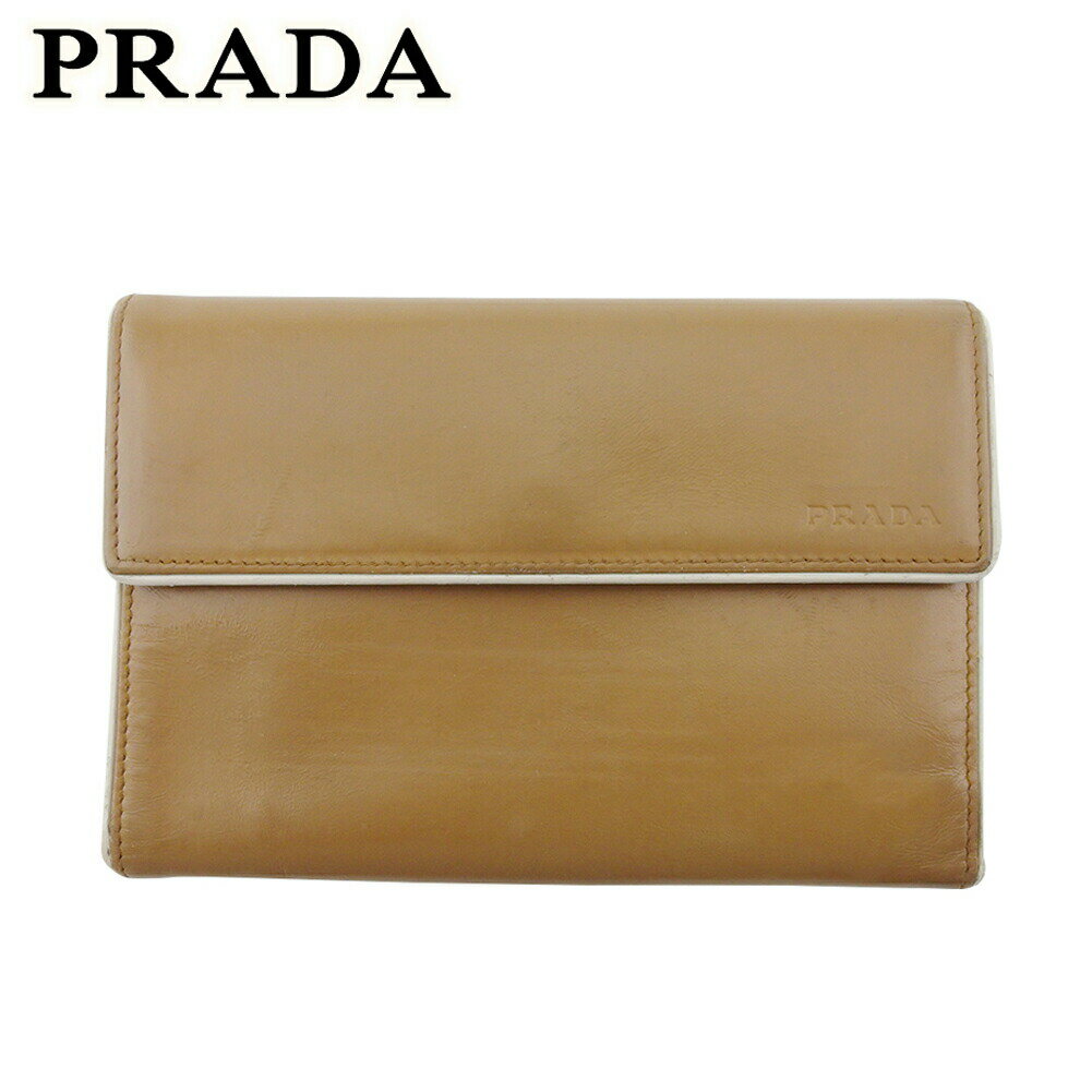 【Fashion Special Fair 30%OFFクーポン】プラダ PRADA 三つ折り財布 ロゴ ブラウン ホワイト 白 レディース 中古 ブランド ハイブランド ヴィンテージ