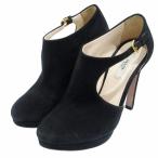 プラダ PRADA ブーティ スエード レザー ストラップ ハイヒール サイドオープン 35 1/2 約22.5cm 0716 レディース