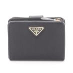 プラダ PRADA トライアングルロゴ 三つ折り財布 レディース メンズ サフィアーノ レザー ゴールド金具 ブラック 黒 1MH043
