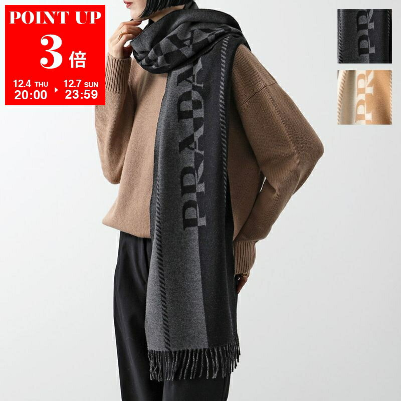 PRADA プラダ マフラー 2FS057 2FK3 レディース フリンジ ストール ジャカードロゴ ウール F0H16/ARDESIA+NERO 2FS057_2FK3_F0H16