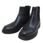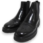良品 PRADA プラダ ウイングチップ サイドゴア チェルシーブーツ 36.5 23.5cm相当 ブラック レディース 古着 中古