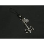 ■新品同様■ PRADA プラダ サフィアーノレザー 携帯ストラップ キーホルダー チャーム シルバー系×ブラック系 FN7208