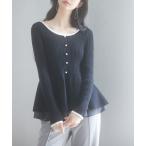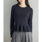 ニット セーター ぺプラム裾クルネックニットプルオーバー レディース