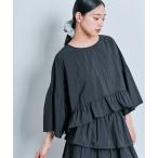 ブラウス シャツ 「サラっとした着心地/晩夏まで活躍する袖丈」フリル袖Tシャツブラウス「Sサイズ展開あり」 レディース