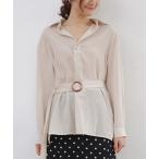 ブラウス シャツ ベルト付きぺプラムブラウス レディース