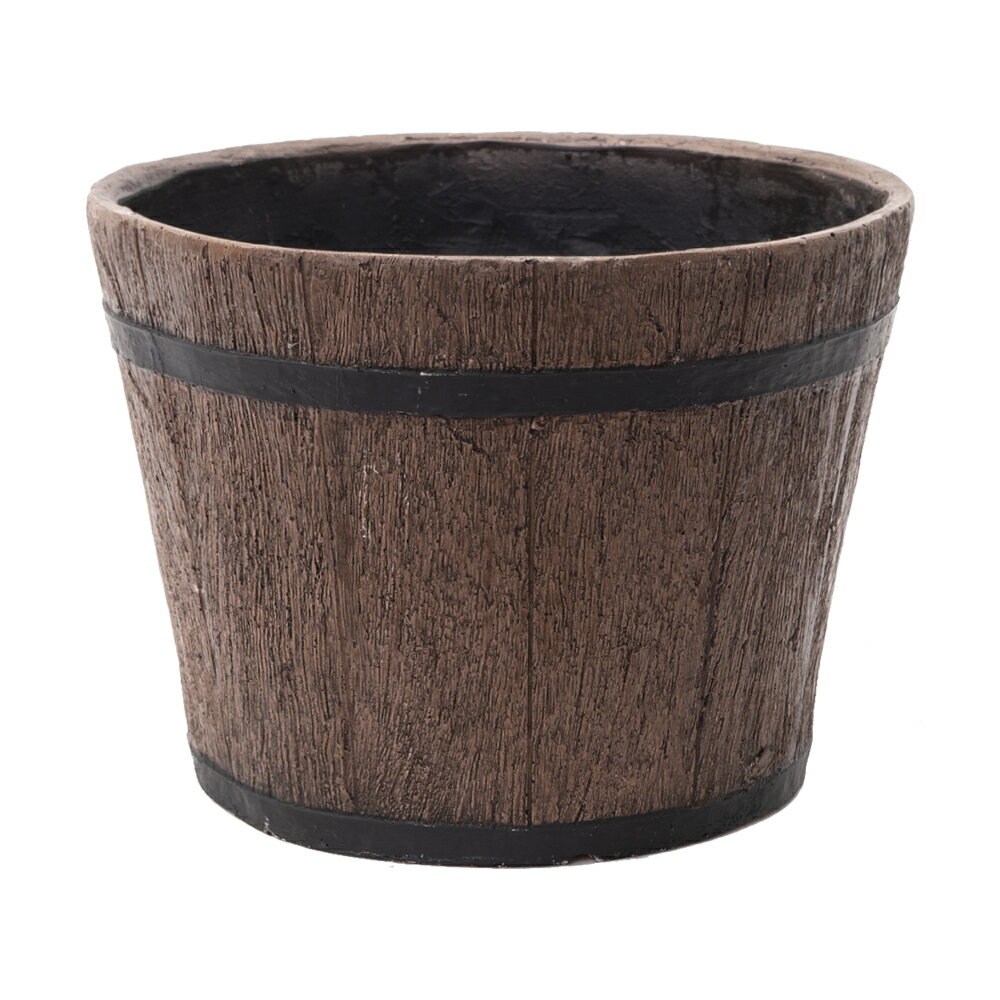 シャルカ リアルウッド調樽型プランター 深型 植木鉢 FRP Sサイズ 26cm 庭 ベランダ 植木鉢 木目調 軽い
