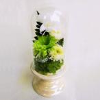 仏花 ガラスドーム入り仏花 デンファレと緑の小菊 お仏壇 お供え 咲き続ける生花 プリザーブドフラワー ギフト[PW]