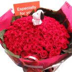 プリザーブドフラワー クリスマスプレゼント 彼女 女性 枯れない花束 ミニ赤バラ 108本 スヌーピーマスコット 花束 ミニローズ あすつく