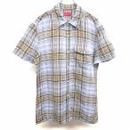プリングルオブスコットランド Pringle of Scotland シャツ 半袖 チェック ポケット 麻×綿 15-1/2in(39.5cm) 紺×茶×緑×ピンク メンズ