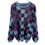 プリングル Pringle ニット セーター ブロックチェック 長袖 スコットランド製 古着 ウール×アクリル M パープル 紫×杢青×黒 メンズ