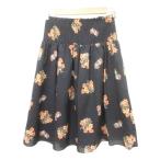 PRINGLE プリングル 1815 スカート ひざ丈 フレア 花柄 ウエストゴム 薄手 UK10 約Mサイズ 黒 ブラック ■YHS3 レディース