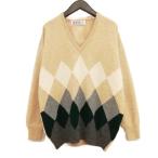 プリングル Pringle ヴィンテージ スコットランド製 Vネック アーガイル ニット セーター 美品 M ベージュ系 メンズ