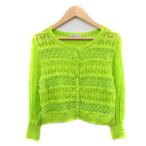 プリングル Pringle カーディガン ミドル丈 透かし編み 麻 リネン混 10 M 黄緑 /YK42 レディース
