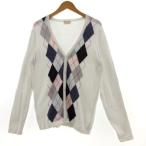 プリングル Pringle カーディガン ニット 長袖 アーガイル柄 V襟 コットン ホワイト 白 マルチカラー M メンズ
