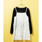 tシャツ 裾フリルドットプリントロンT/長袖Tシャツ レディース