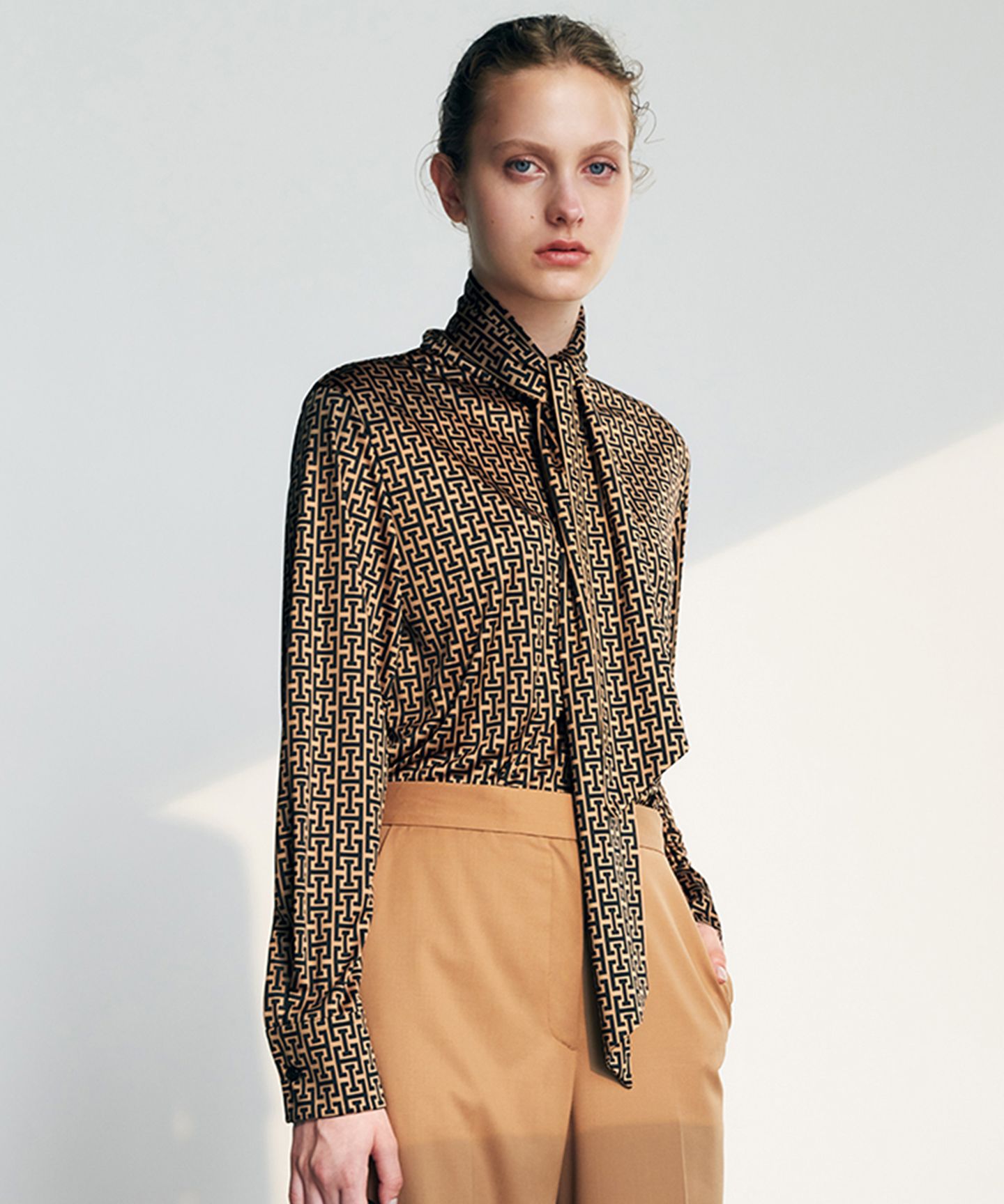 ICB(アイシービー)/【30th ANNIVERSARY】 モノグラムプリントスムース ボウタイブラウス