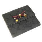 GUCCI プリンシー Wホック 財布 折りたたみ GGキャンバス 167465 ブラック レザーリボン 赤 10887 【中古】
