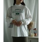 tシャツ 布帛ドッキングロゴプリントロンT レディース