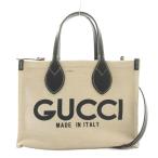 グッチ GUCCI 日本限定 プリントミニトートバッグ 2WAY ハンド ショルダー キャンバス レザー ロゴ ベージュ 黒 ブラック 772144 /BB