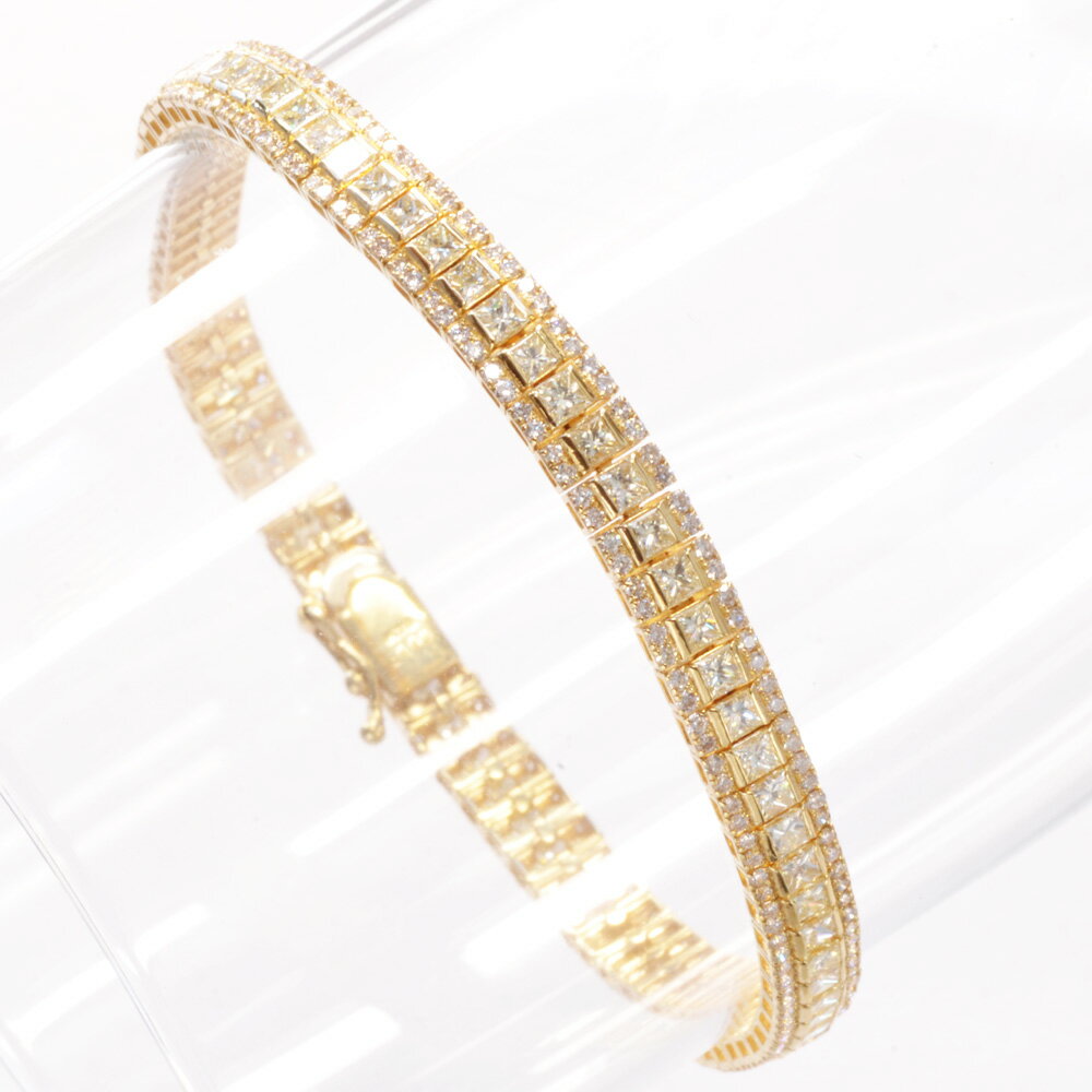 【マラソン同時開催★10%OFFクーポン】ブレスレット メンズ K18 18金 18K プリンセスカット ダイヤモンド 5カラット イエローゴールド ジェンダーレスジュエリー 日本製 刻印入り 鑑別書付き シンプル プレゼント ギフト