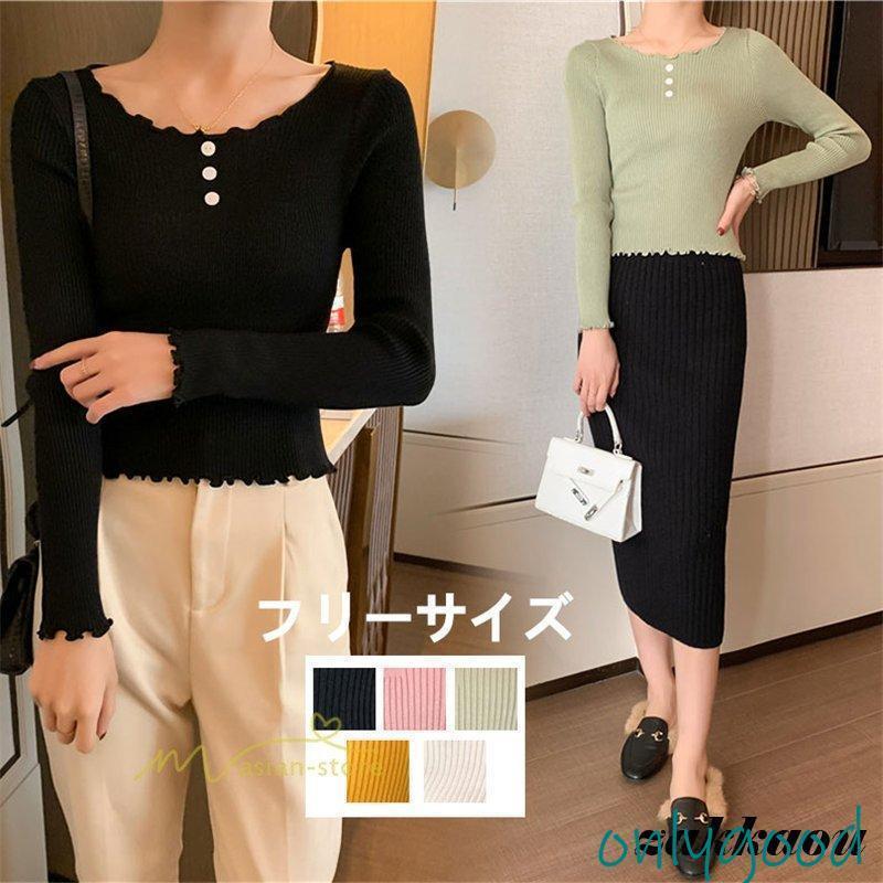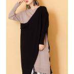 ニット レディース 秋冬 リブニット 薄手 洗える プルオーバー レイヤード風 重ね着風 カシュクール風 切り替え