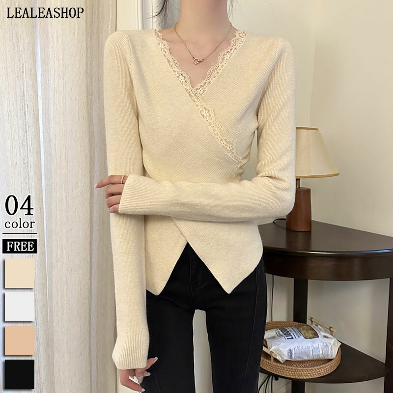 ニットセーター レディース 春服 初春 vネック カシュクール シルキータッチニット 長袖 薄手ニット プルオーバー トップス カットソー