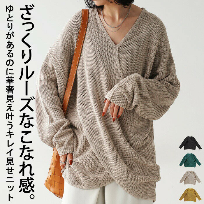 【22%OFF】ニット トップス レディース 長袖 きれいめ 1枚で決まる ゆったり 着痩せ プルオーバー カットソー おしゃれ 体型カバー かわいい 可愛い ハイネック タートルネック シンプル 無地 大きいサイズ 2WAY オーバーサイズ カシュクール ローゲージ 秋 冬 秋冬