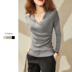 カシュクール Tシャツ 長袖Tシャツ レディース トップス ロンT 長袖 vネック 重ね着 レイヤード インナー カットソー プルオーバー カシュクール 無地 リブ フィット スリム シンプル 可愛い カジュアル おしゃれ お出かけ 通学 通勤