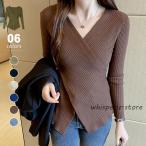 ニットトップス レディース Vネック 春 秋 冬 長袖 きれいめ リブ リブニット ニット セーター セーター カシュクールネック プルオーバー ニットセーター ゆっ