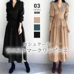 カシュクールワンピース ワンピース コーデュロイ レディース 長袖 カシュクール ティアード ロングワンピース ロング プルオーバー フレアワンピース vネック