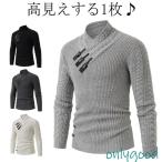 セーター メンズ 秋 冬 服 長袖 ニット プルオーバー Vネック カシュクールネック アラン編み アメカジ スリット 中華風 チャイナー プルオーバ
