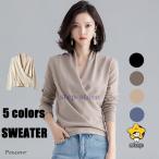 ニット レディース 秋物セーター 長袖 トップス カシュクール プルオーバー 30代 40代 50代 おしゃれ 秋冬