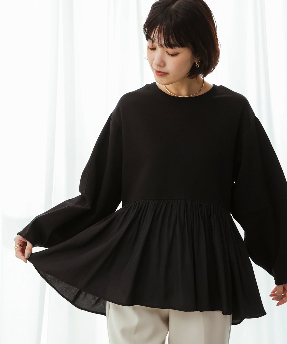 tシャツ シルキーコットンペプラムプルオーバー レディース