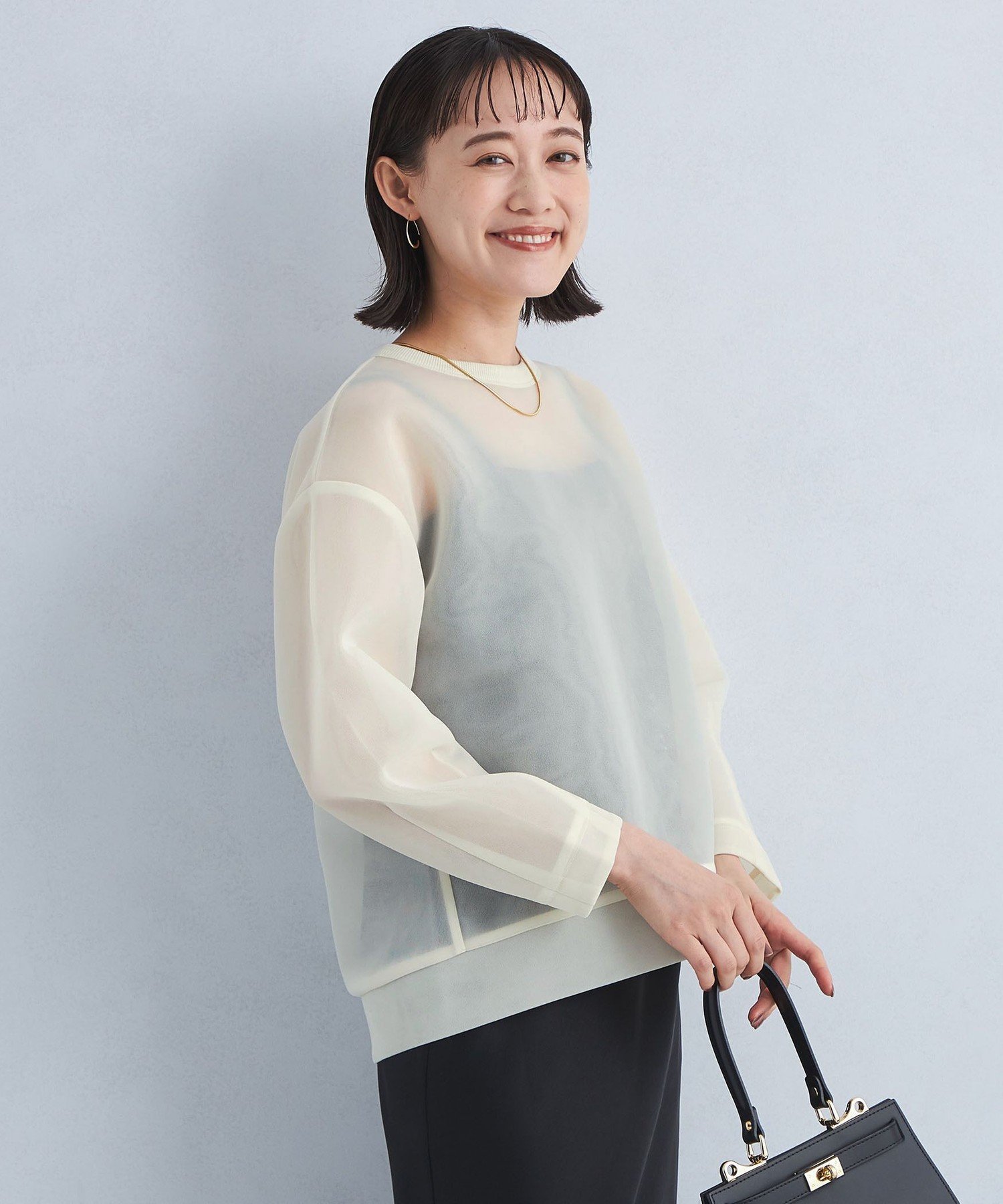 【SALE/70%OFF】UNITED ARROWS green label relaxing ハイメッシュ チュール ロングスリーブ プルオーバー ユナイテッドアローズ アウトレット トップス カットソー・Tシャツ グリーン ベージュ グレー ブラック ホワイト