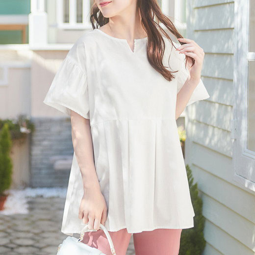 カットソー プルオーバー パール調ボタン付キーネックトップス(M〜3L) ベルーナ belluna 40代 50代 60代 ミセス 大人 レディース Alotta アロッタ 夏 夏服 トップス Tシャツ