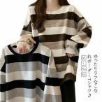 ロングtシャツ レディース ボーダー 長袖 Tシャツ ラウンドネック トップス プルオーバー カジュアル カットソー インナー ナチュラル 春 秋 冬