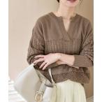 ニット セーター quaranciel:「手洗い可能」透かし編み スキッパー ニット プルオーバー レディース