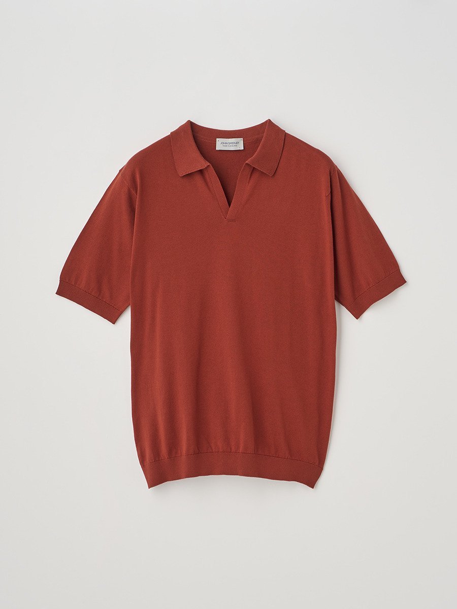 JOHN SMEDLEY スキッパーネック半袖コットンニットプルオーバー | SYRES | 30G MODERN FIT ジョンスメドレー トップス ニット レッド【送料無料】