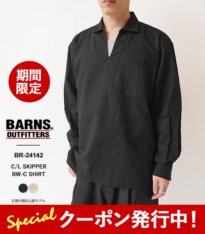 ★10%OFFクーポン発行中!【SALE】バーンズ アウトフィッターズ シャツ メンズ Barns Outfitters C/L SKIPPER BW-C SH BR-24142 リネン スキッパーシャツ 長袖 プルオーバー 綿麻【2430】≪返品交換対象外≫