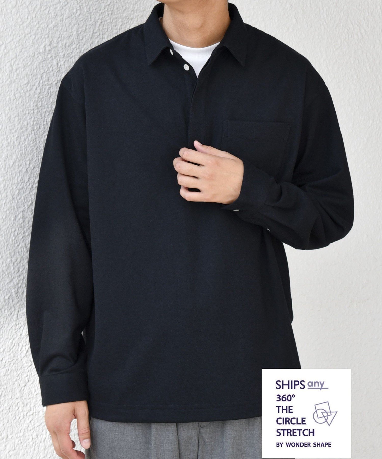 【SALE/10%OFF】SHIPS any SHIPS any: 360° THE CIRCLE STRETCH ウールライク スキッパー プルオーバー シャツ(セットアップ対応)◇ シップス トップス シャツ・ブラウス ブラック ベージュ【送料無料】