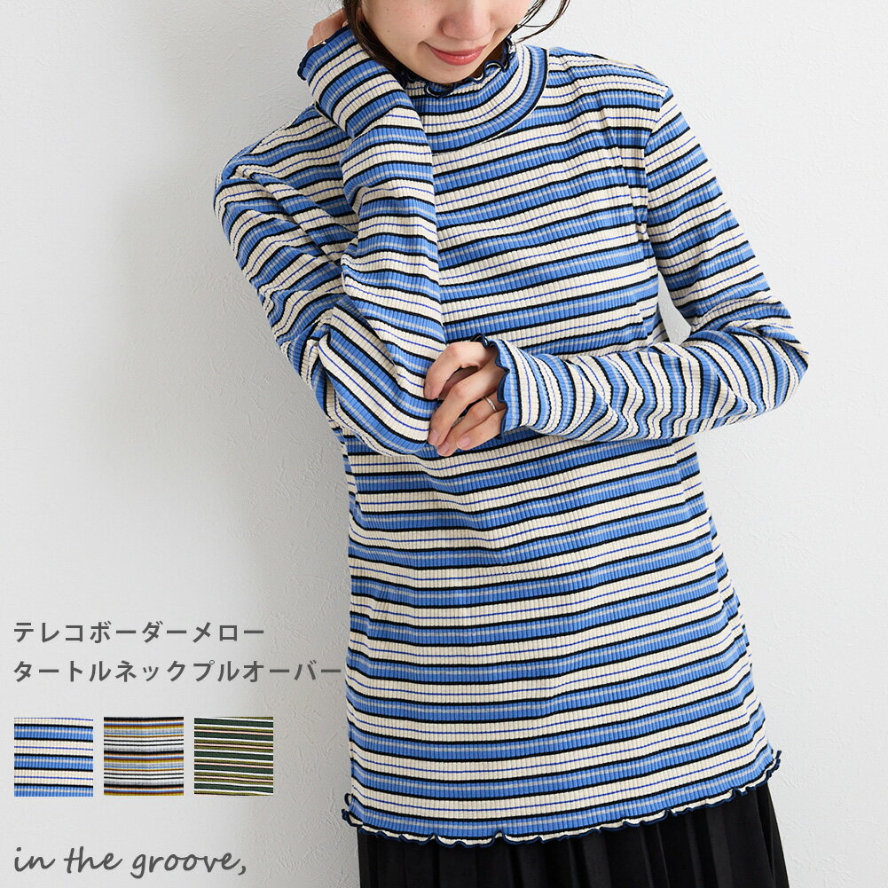 【 30%OFF 】 レディース トップス カットソ− プルオーバー インナー ロンT 長袖 【 テレコ ボーダー メロー タートルネック プルオーバー 】 ハイネック ボーダー 薄手 伸縮性 重ね着 フリル カラー 大人 カジュアル メール便可 few