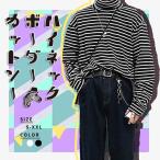 SALE メンズ カットソー ボーダー ハイネック タートルネック 長袖 トップス ロンT カジュアル プルオーバー ゆったり オーバーサイズ シルエット 即納 安い