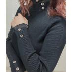 ニット セーター 「Cieluna」袖ボタンハイネックリブニットプルオーバー レディース
