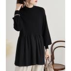 ニット セーター Anna Nicola 異素材切り替えペプラムニットプルオーバー レディース