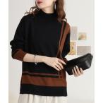 ニット セーター Anna Nicola ライン配色タートルネックニットプルオーバー レディース