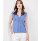 tシャツ フリル付きニットノースリーブプルオーバー レディース